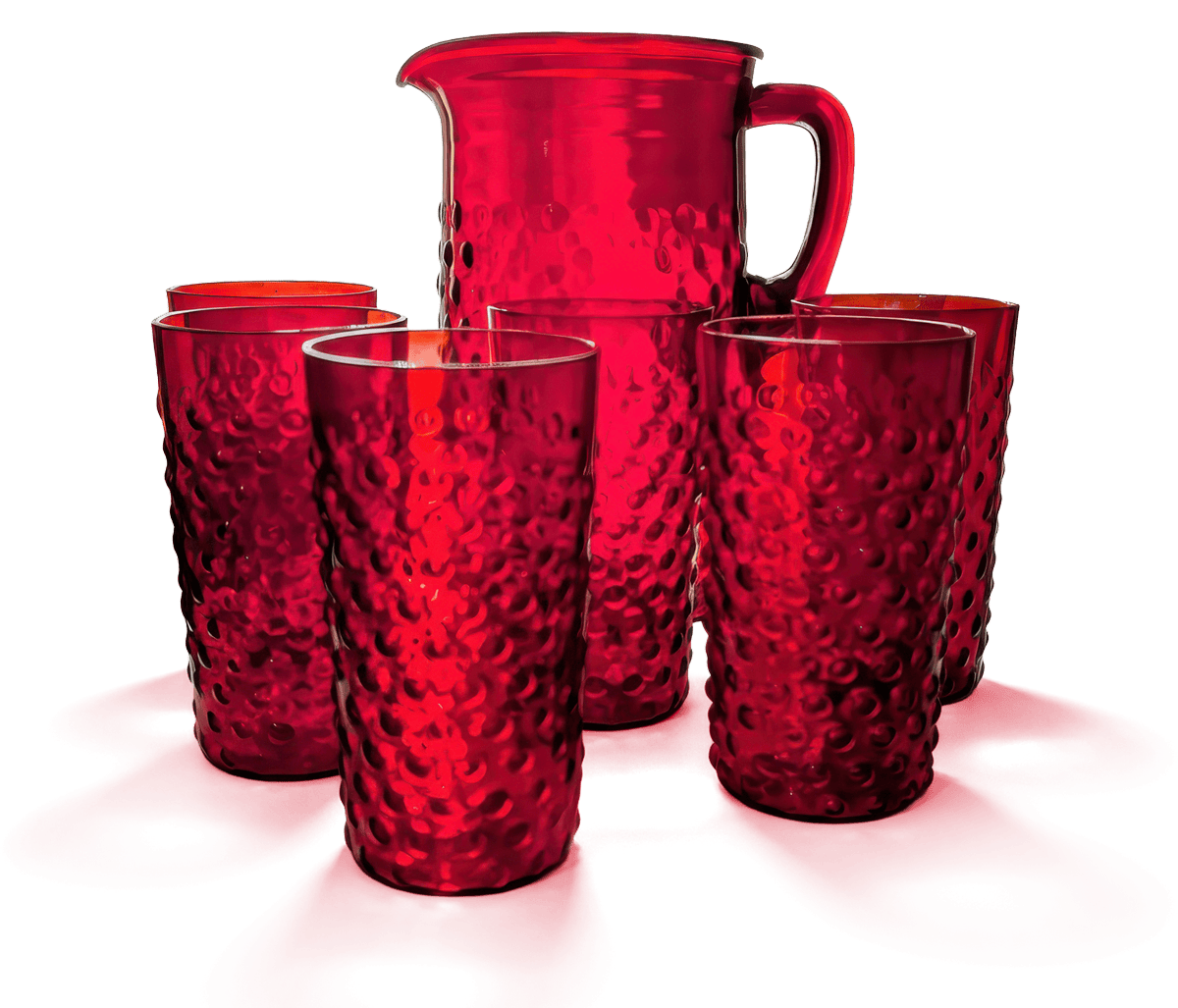 Vintage Anchor Hocking Ruby Red Hobnail Set of 6 Tumblers w/ Pitcher