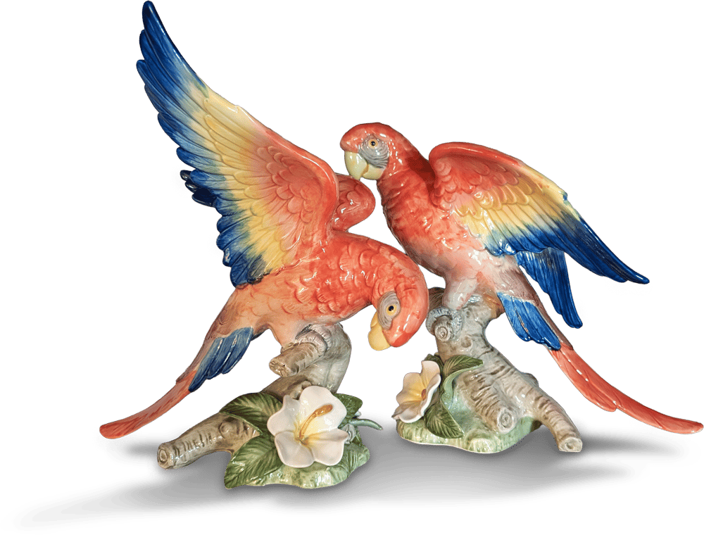 Set of 2 Vintage Fitz & Floyd Ceramic Parrots, c.1986